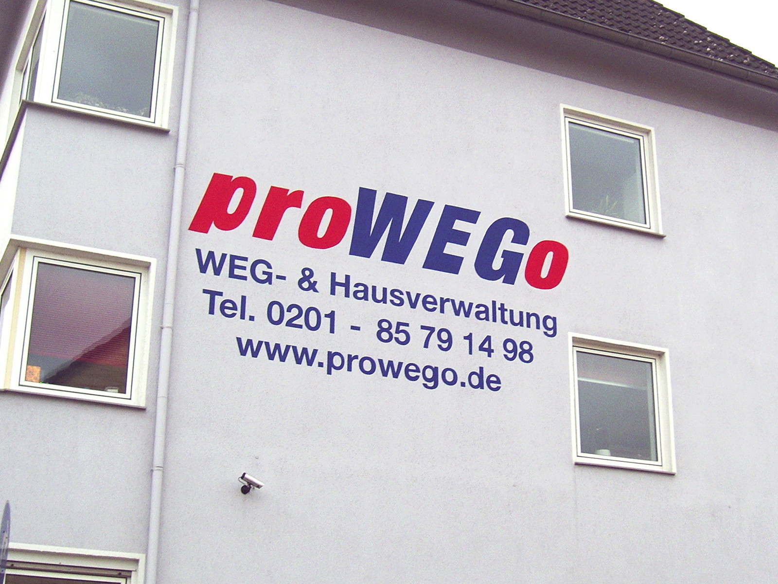 Fassadenanstrich, Aufbringen der neuen Werbeschrift, Garagenanstrich